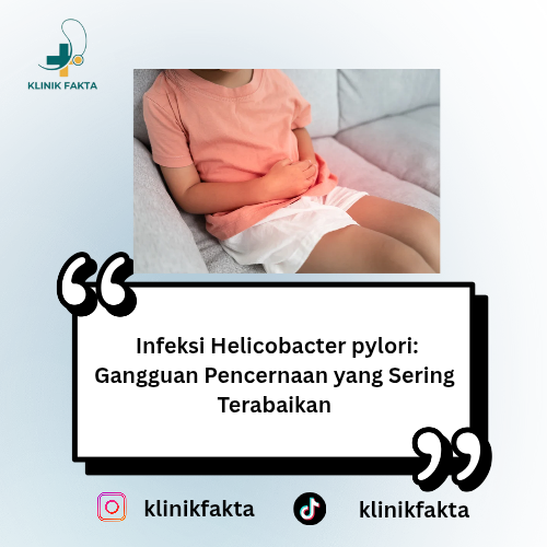 Infeksi ini adalah kondisi ketika bakteri Helicobacter pylori berkembang di lapisan lambung. Bakteri ini bisa merusak mukosa pelindung lambung, menyebabkan gastritis, tukak lambung, hingga meningkatkan risiko kanker lambung.