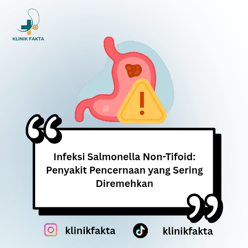 Infeksi Salmonella non-tifoid adalah penyakit infeksi usus yang disebabkan oleh bakteri Salmonella enteritidis atau Salmonella typhimurium, berbeda dengan Salmonella typhi yang menyebabkan demam tifoid (tipes). Penyakit ini biasanya berhubungan dengan konsumsi makanan atau minuman yang terkontaminasi bakteri.