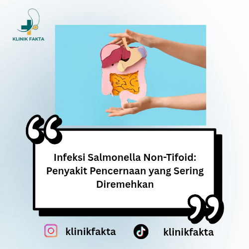 Infeksi Salmonella non-tifoid adalah penyakit infeksi usus yang disebabkan oleh bakteri Salmonella enteritidis atau Salmonella typhimurium, berbeda dengan Salmonella typhi yang menyebabkan demam tifoid (tipes). Penyakit ini biasanya berhubungan dengan konsumsi makanan atau minuman yang terkontaminasi bakteri.