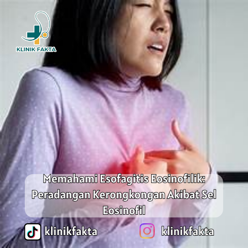 Esofagitis eosinofilik adalah peradangan kronis pada kerongkongan akibat penumpukan sel eosinofil, sering dikaitkan dengan alergi makanan atau lingkungan. Gejala meliputi kesulitan menelan, makanan tersangkut, nyeri dada, dan refluks. Diagnosis melalui endoskopi dan biopsi penting untuk konfirmasi dan menentukan pengobatan. Penanganan meliputi obat anti-inflamasi, diet eliminasi, dan prosedur medis bila diperlukan. Dengan pengelolaan yang tepat, penderita dapat mengendalikan gejala, memperbaiki fungsi kerongkongan, dan meningkatkan kualitas hidup.